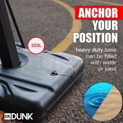 The massive 225L capacity base can be easily filled with water or sand to provide a stable foundation. It also has built-in wheels, allowing you to position it anywhere you like from the backyard to the end of the street.