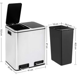 - Organize your waste with ease with this two-compartment waste-sorting bin. The removable inner buckets, foot pedals, and lids allow you to operate each compartment separately for easy disposal. Keep your home tidy and your recycling efforts on track with this convenient waste-sorting solution.