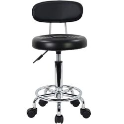 EKKIO Backrest Round Salon Stool with Adjustable Height (Black) EK-SS-101-YB