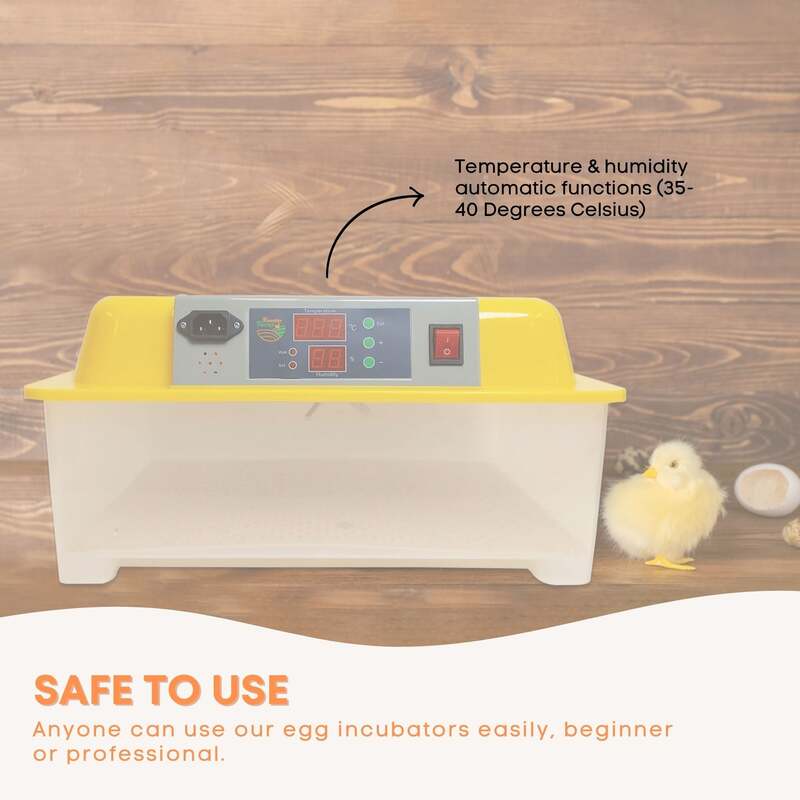 Includes an auto turning tray and electric LED Digital screen. With a simple and smart digital design, anyone can use our egg incubators easily, beginner or professional.