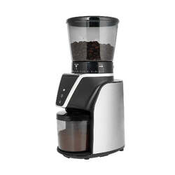 This easy-to-use coffee grinder has simple digital touch controls and a built-in timer. The low grinding speed reduces both static and heat while running at low noise operation levels, to avoid over-heating the coffee beans and overly noisy grinding. With 165 watts of motor power to grind efficiently and consistently with added overheat protection, this coffee grinder is perfect for professional results in your home or office kitchen.