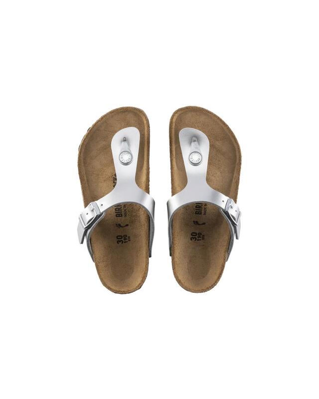 - Birkenstock Kids Gizeh Birko-Flor Sandal in Electric Metallic Silver