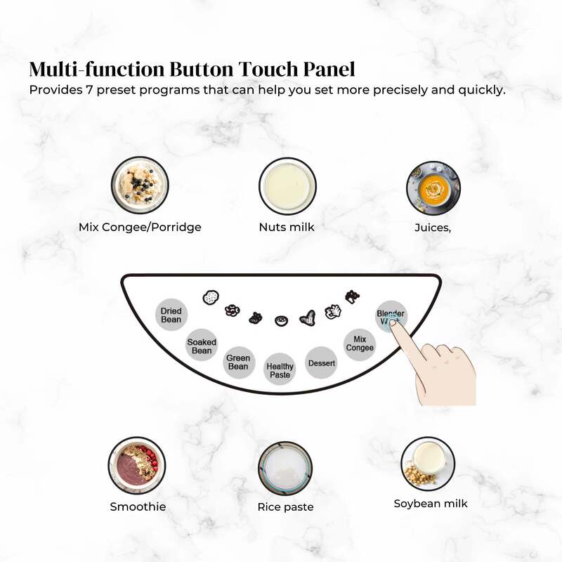 No soaking or filtering necessary for a smooth and fine taste, the Soy Milk Maker heats, blends and produces milk and other foods simply, quickly and easily all in one appliance at the press of a button.
