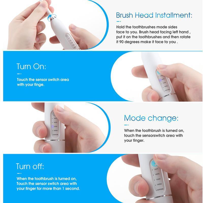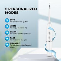 There are 5 working modes to switch from, suitable for the different sensitivity of gums and efficiently remove stubborn calculus, tartar and tooth stains.