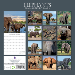 Elephants 2024 Square Wall Calendar Pets Animals 16 Months New Year Planner Gift