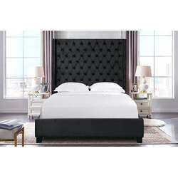Ella Winged Bed 180cm - Queen Size - Black Velvet