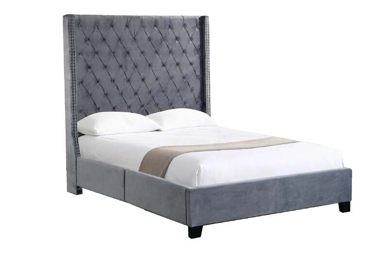 Ella Winged Bed 180cm - Queen Size - Grey Velvet