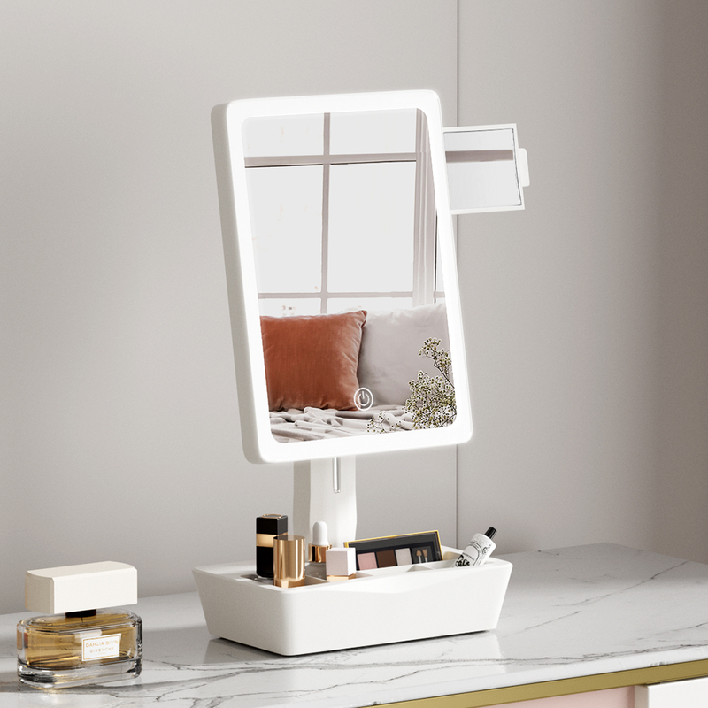 Feel like a star with the latest addition to the Embellir family, the compact Storage Mirror. The mirror features clean daylight LEDs that closely mimic natural sunlight for a true-to-colour beauty routine. A dimmable function helps you account for all kinds of lighting conditions. The extra-large distortion-free mirror is ideal for applying general makeup while a 10x magnification pull-out mirror is ideal for small detail work. A 360-degree swivel provides horizontal and vertical rotation for the optimum viewing angle. The sturdy storage base allows the mirror to stand proudly while also holding your most essential make-up, jewellery or other grooming pieces. Be ready for any night out with the Embellir Storage Mirror.