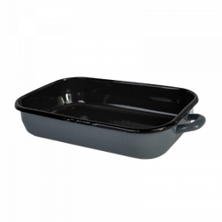 Urban Style Authentic HANDMADE Romanian Enamelware Products are made with a base metal consisting of Carbon Steel and Finished by hand with a Porcelain Enamel Coating. Strong Yet Lightweight, Easy to Clean, Non-Porous, Functional, Stylish, Durable, and available in various colours and products. Food Safe & Dishwasher Safe. Suitable for use on all stove tops including induction and ovens. Creating an eclectic mix of Modern and Rustic. Select matching or contrasting colours for eye catching table settings and serving options. Perfect for Cafes. Restaurants, Hotels or for home use. Dishwasher Safe. Heat Safe in excess of 450 degrees Centigrade Enamel Romanian 32cm or 3.2 L Grey Baking Dish with a Black rim is great for serving, baking, lasagnes, vegetables etc. Can go from oven to table. Is freezer safe, however needs to get to room temperature before putting in hot oven. Dishwasher Safe.