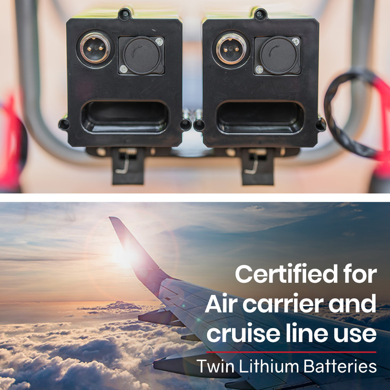 The Lithium batteries are a size that ensures this power wheelchair is permitted to take on planes and cruise liners.