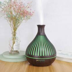 Elegant wood grain design, this 400ml ultrasonic electric air mist ultrasonic humidifier is used for aromatherapy by diffusing essential oils and mist into the air. Remote controlled, the diffuser is useful as a night light featuring 7 controllable colour changing LED lights.