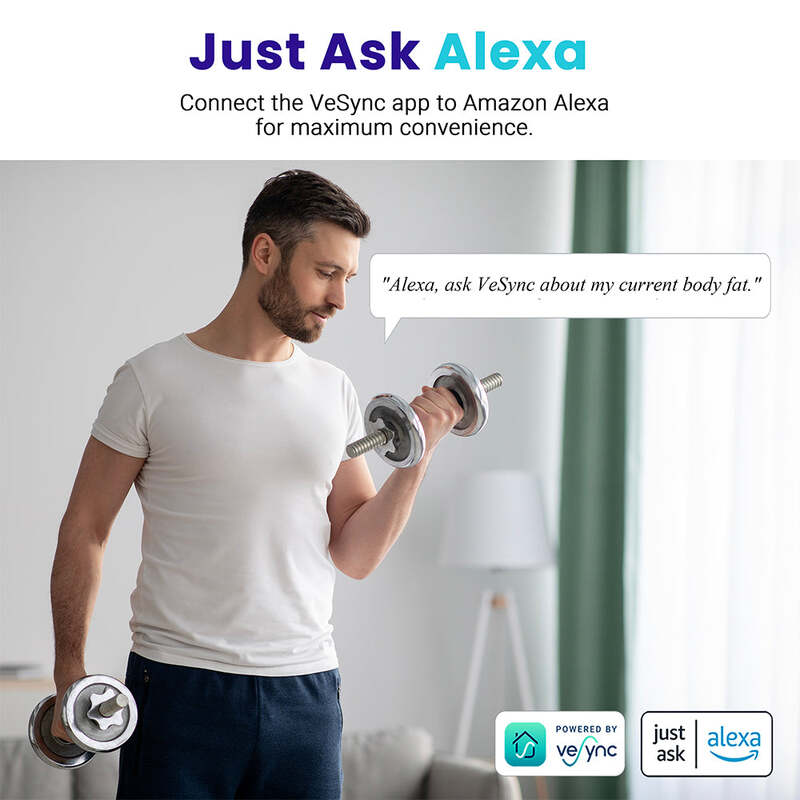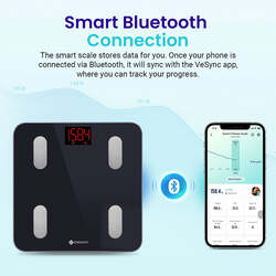 Designed for convenience, the scale's sleek 30 x 30 cm slim design makes it a seamless fit in any space. The clear LED display (7.4 x 3.3cm) offers easy readability, enhancing your monitoring experience. Seamlessly sync your data via the VeSync App, providing you with a comprehensive overview of 13 different health metrics.