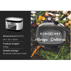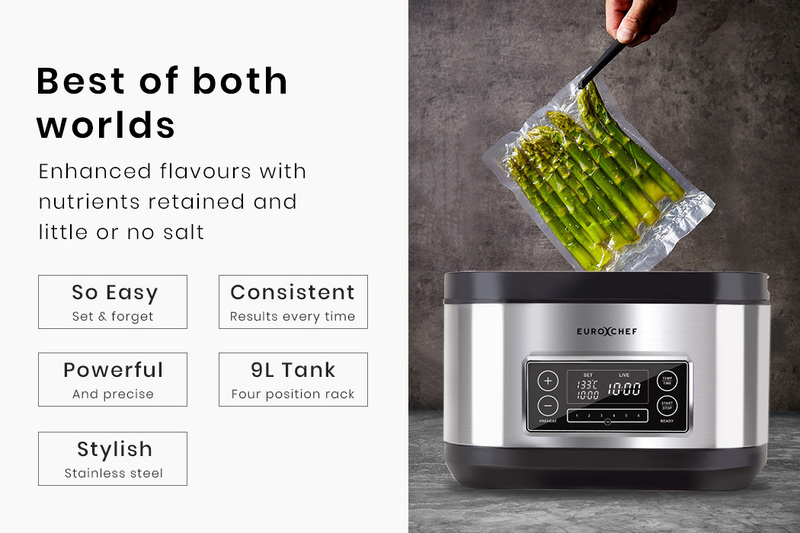 Introducing the EuroChef 9L Sous Vide Cooker. Using the classic French sous vide method (pronounced ????uvee????), with the powerful and easy-to-use EuroChef you can cook succulent, healthy and delicious quality meals every time.