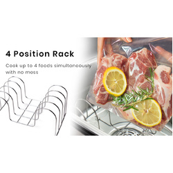 The included rack enables you to evenly cook 4 large steaks, or even prepare different types of food with no mess or cross-contamination. And, when you????re done you can pull them all out with the supplied tongs. With its sleek stainless steel appearance, the EuroChef will look right at home in any kitchen. Bring your Master Chef A-game to your next dinner party with the EuroChef Sous Vide Machine!