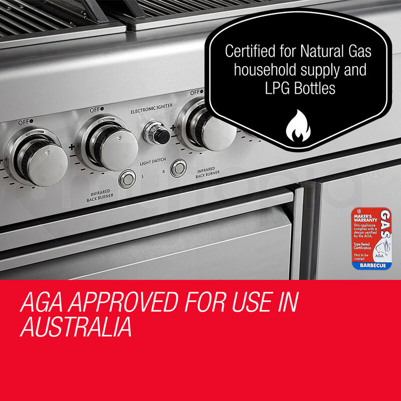 - Main Stainless Steel Burners (x6) Gas Consumption: 13 MJ/h (LPG)