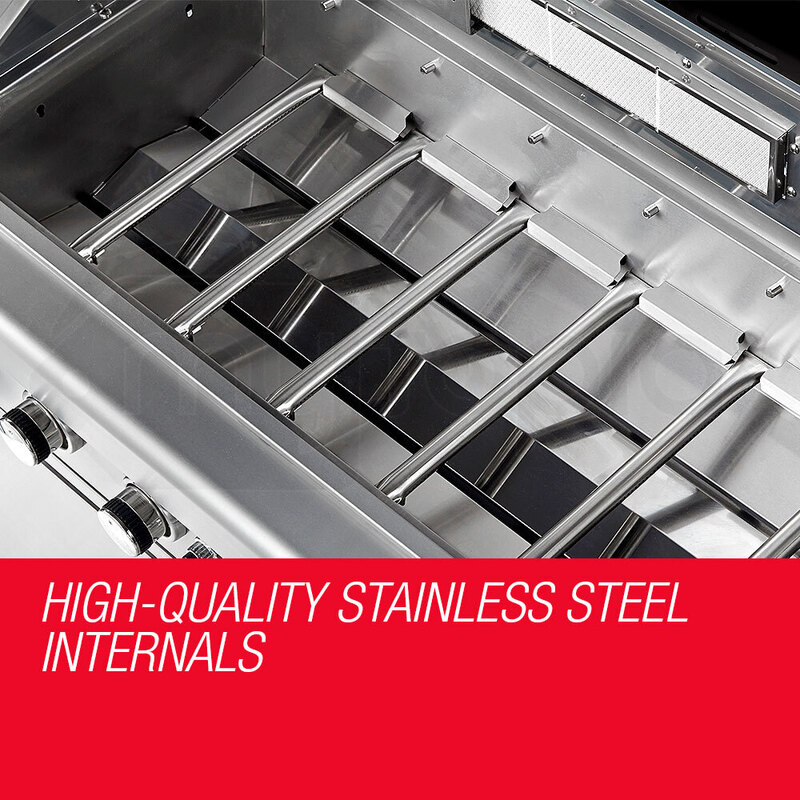 Far from just a BBQ, this state-of-the-art model will create a second kitchen in your backyard. With a massive cooking area, rotisserie, wok burner, serving tables, two cabinets and three spacious drawers, it offers everything you need to stay where the king of the BBQ belongs - by the BBQ.