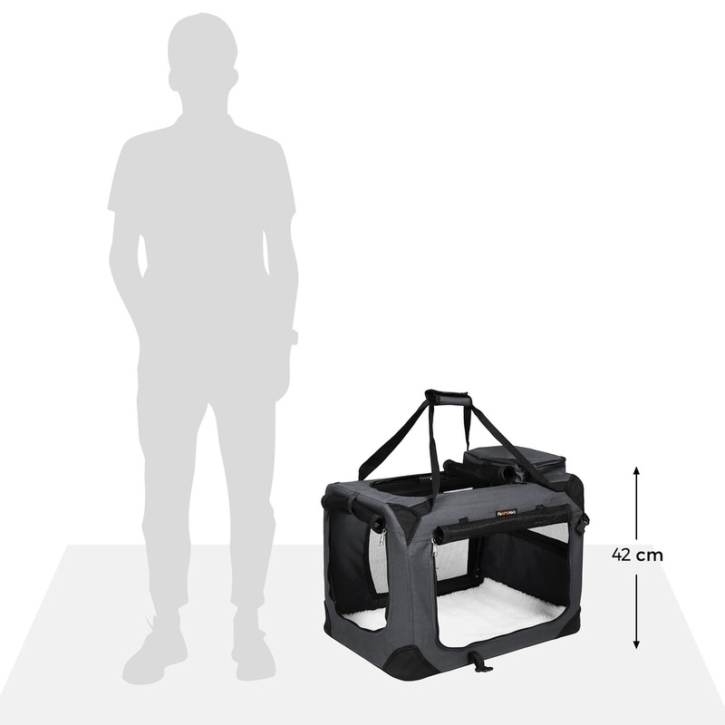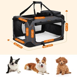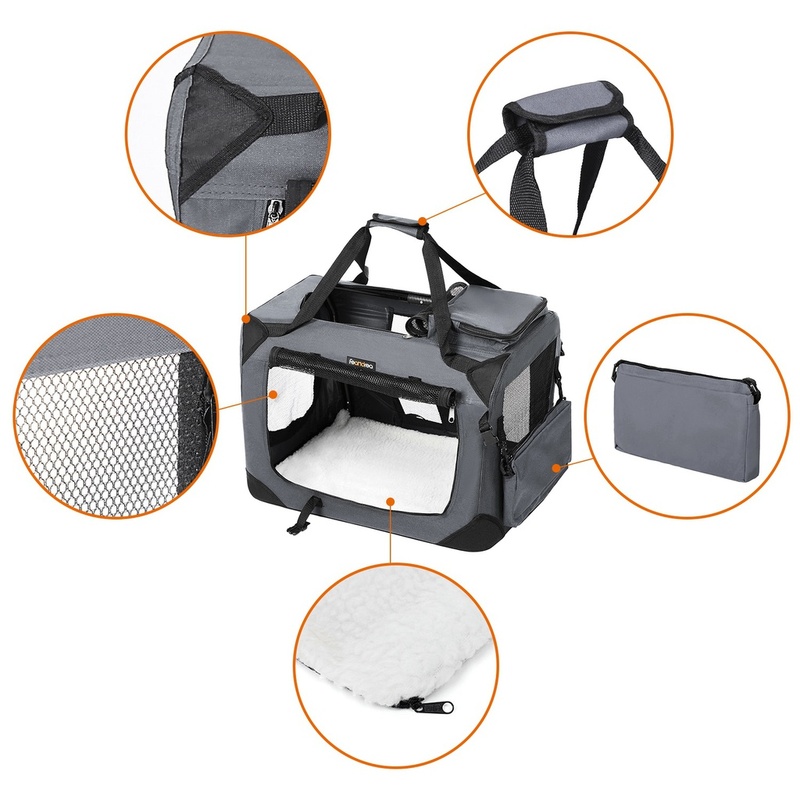 FEANDREA Dog Kennel Transport Box Folding Fabric Pet Carrier 60cm Grey