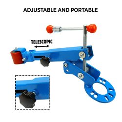 Equipped with adjustable arm has second telescoping arm with roller, allows this fender roller for 180 degrees wheel swivel.