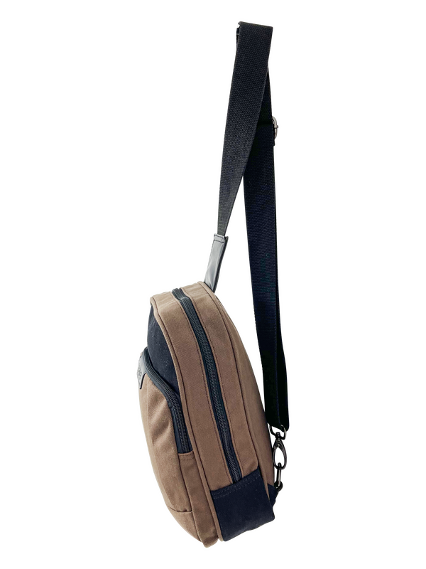 The FIB Byron Sling Backpack Bag Travel - Brown is a stylish and versatile bag that's perfect for anyone on the go. With its durable canvas material, multiple pockets, and padded tablet pocket, this bag is perfect for travel, work, or everyday use.