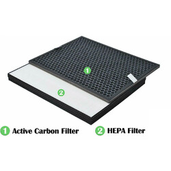 1. Active Carbon filter - Designed to protect from harmful gases and odours, effectively removing & absorbing VOC (volatile organic compounds) as well as other harmful gases created by cooking, renovations or pollution.