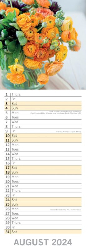 Floral Collection 2024 Slimline Slim Wall Calendar Hanging Planner New Year Gift