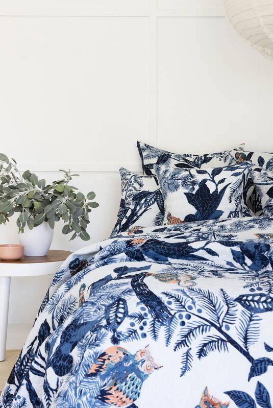 - Reversible quilt with floral pattern at front and plain cotton fabric at the back.