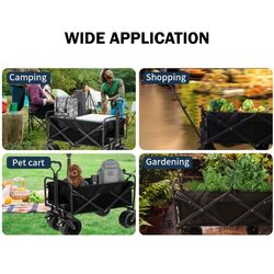 ??arge Capacity & Quick Fold??ltra-sturdy construction & 220-pound weight capacity - You can freely load your cart with plenty of items without worrying about damaging it, very suitable for weekend-long picnics, faraway beach getaways, afternoon gardening and etc.