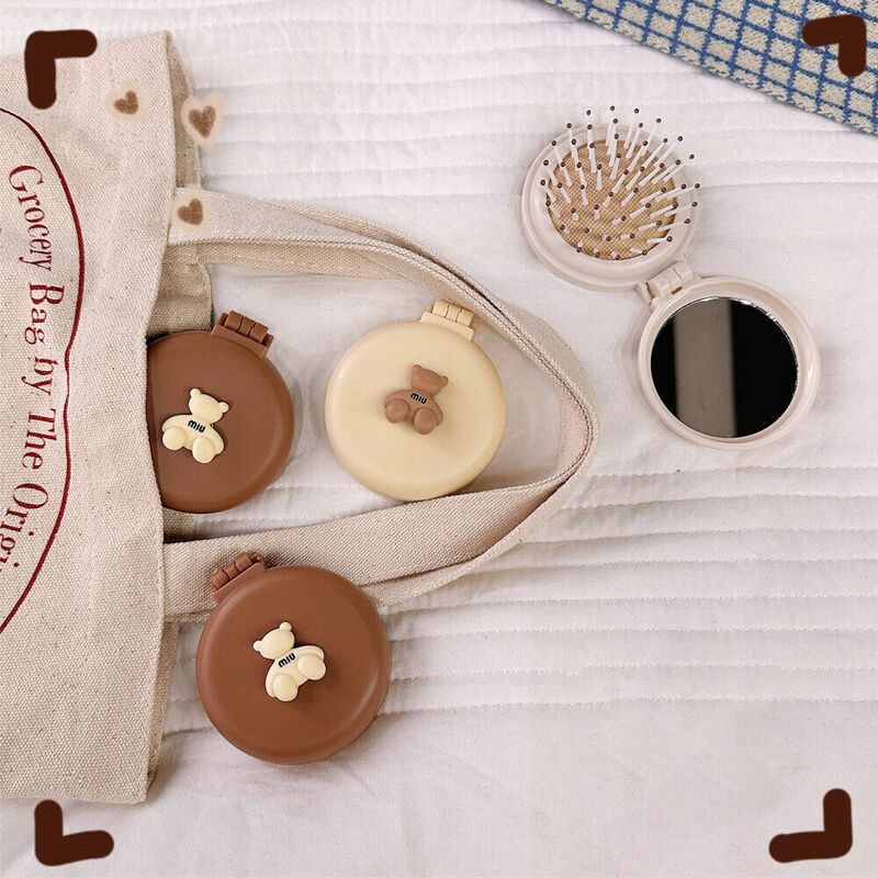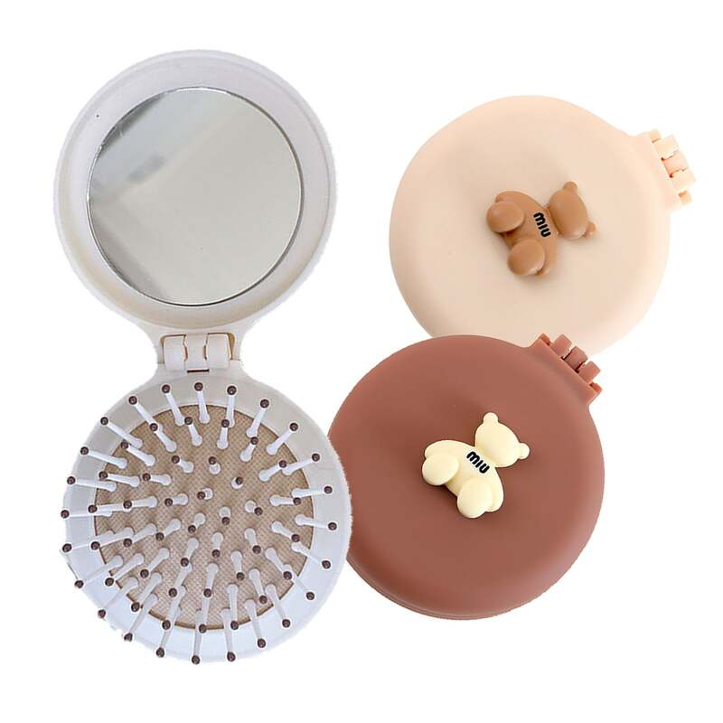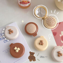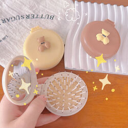 Folding Travel Comb with Mirror Air Cushion Comb Portable Airbag Massage Hair Brush(Coffee)