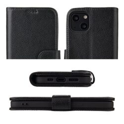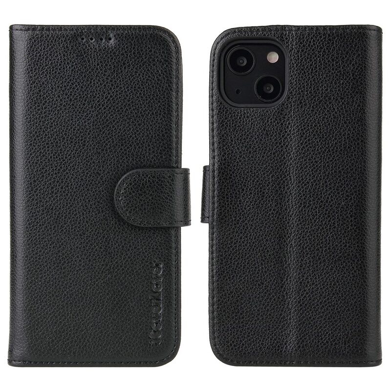 For iPhone 13 mini Case iCoverLover Black Genuine Cow Leather Wallet Folio Cover