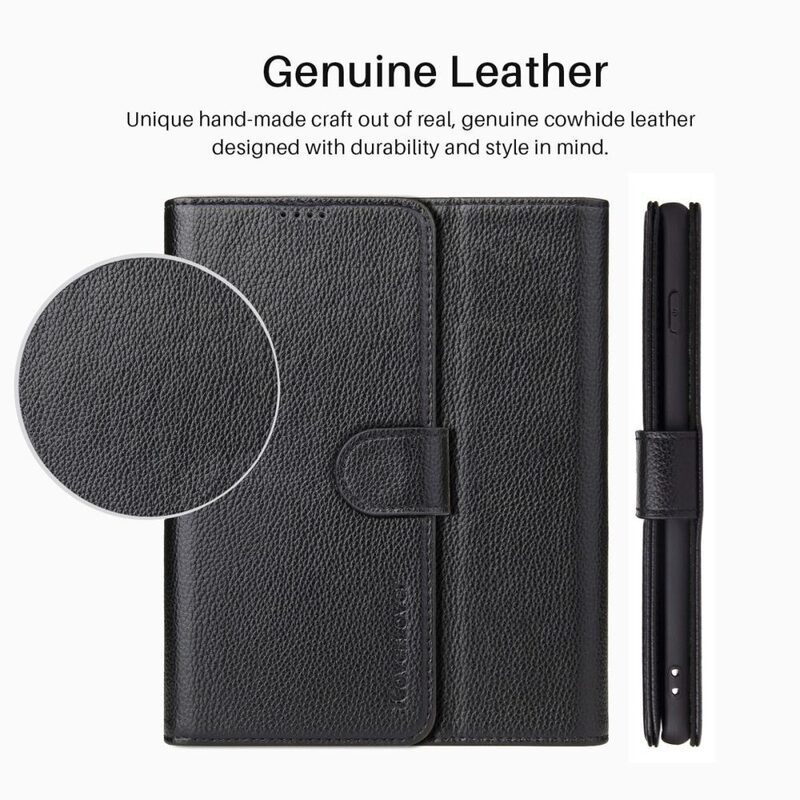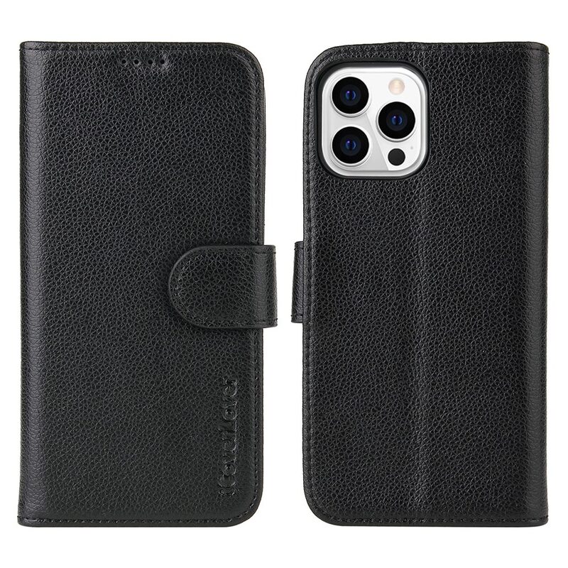 For iPhone 14 Pro Case iCoverLover Black Genuine Cow Leather Wallet Folio Cover