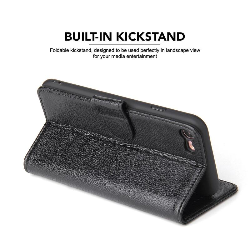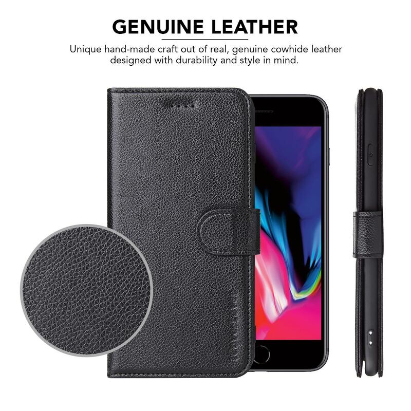 For iPhone SE 5G (2022), SE (2020) / 8 / 7 Case, Genuine Cow Leather Wallet Cover,Black