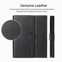 For iPhone XR Case iCoverLover Black Genuine Leather Wallet Folio Case