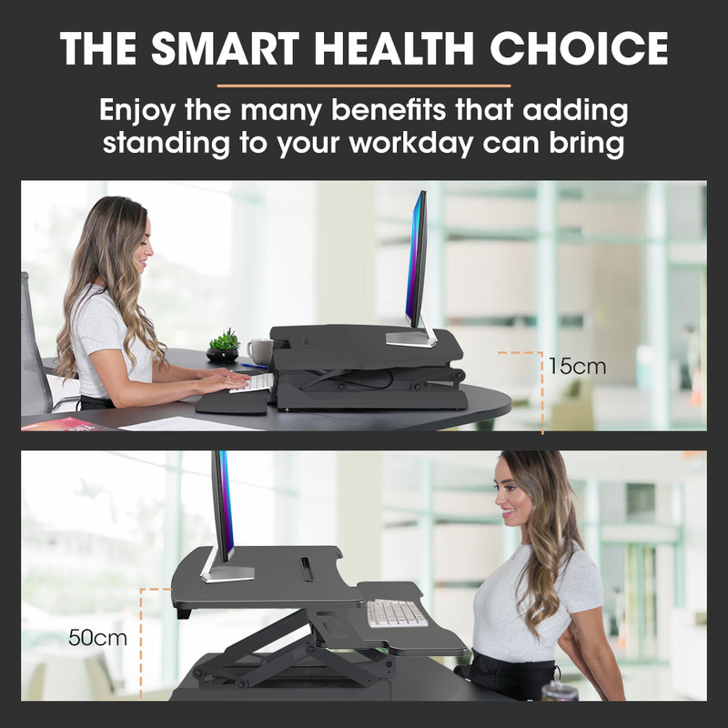 Fortia Desk Riser 90cm Wide Adjustable Sit to Stand for Dual Monitor, Keyboard, Laptop, Black