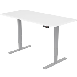 Fortia Sit To Stand Up Standing Desk, 160x75cm, 62-128cm Electric Height Adjustable, Dual Motor, 120kg Load, White/Silver Frame