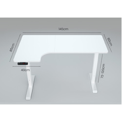 Fortia L Shaped Sit To Stand Up Corner Standing Desk, 72-120cm, Dual Motor, Adjustable Height Electric, 80kg Load, Left-Hand Sided, White