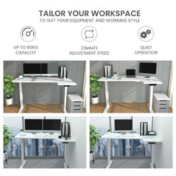 The desktop comes pre-drilled for easy assembly and is accompanied by a quality manual. Height adjustable non-marking feet ensure a stable placement in any home office or corporate environment. Give your workspace a lift with the FORTIA L-Shaped Standing Desk.