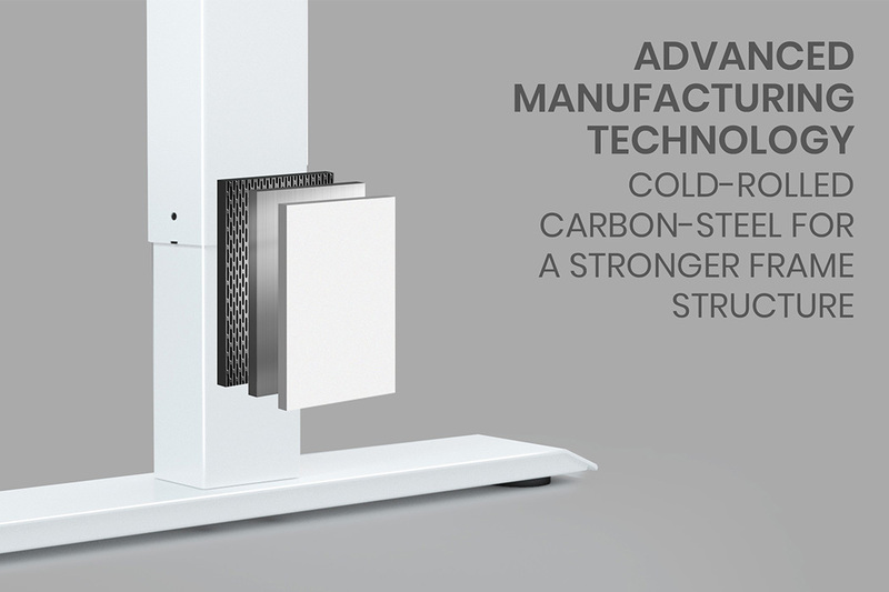 The FORTIA electric sit/stand desk features a double motor system which means height adjustment can smoothly and quietly take place in only around 10 seconds! The motors are strong enough to lift a massive 80kg, so you can look forward to superior durability. Plus, unlike other models on the market, the motors are neatly and safely enclosed into the frame.