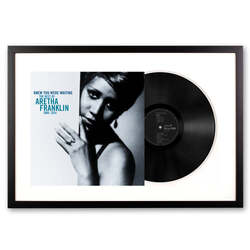 Framed Aretha Franklin Knew You Were Waiting: The Best of Aretha Franklin 1980-2014 Vinyl Album covers are the most recognisable and significant imagery of our lifetime. We are eager to honour and showcase this art form by framing the actual original artist's vinyl cover and vinyl record themselves. This record is framed using all wood profiles, archival matting, and UV-filtering non-glare acrylic. The cover artwork is presented in full, while the actual vinyl peeks out of the sleeve. The outer dimensions of each frame are 75 cm x 47.5 cm