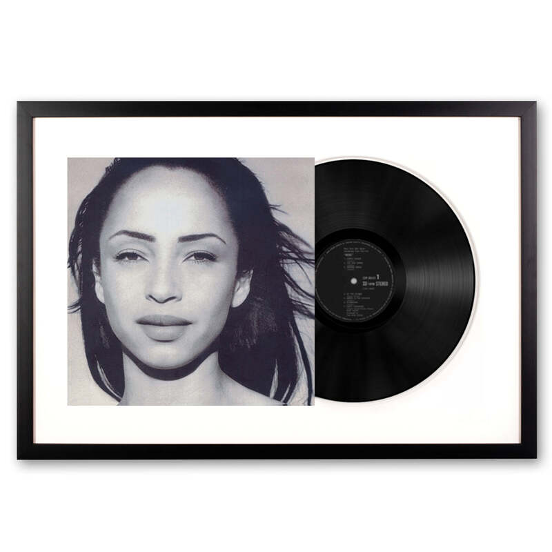 Framed Sade the Best of Sade Vinyl Album covers are the most recognisable and significant imagery of our lifetime. We are eager to honour and showcase this art form by framing the actual original artist's vinyl cover and vinyl record themselves. This record is framed using all wood profiles, archival matting, and UV-filtering non-glare acrylic. The cover artwork is presented in full, while the actual vinyl peeks out of the sleeve. The outer dimensions of each frame are 75 cm x 47.5 cm