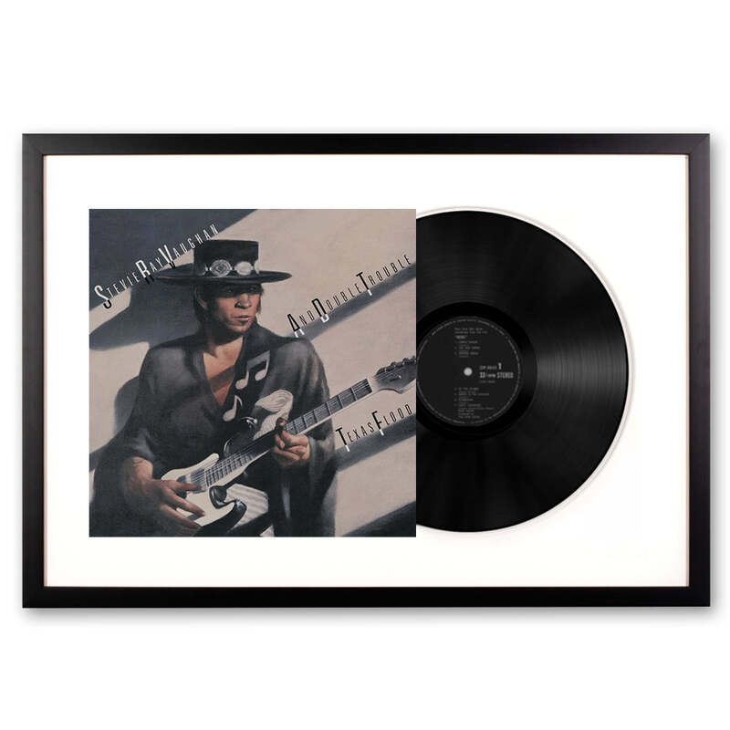 Framed Stevie Ray Vaughan Texas Food Vinyl Album covers are the most recognisable and significant imagery of our lifetime. We are eager to honour and showcase this art form by framing the actual original artist's vinyl cover and vinyl record themselves. This record is framed using all wood profiles, archival matting, and UV-filtering non-glare acrylic. The cover artwork is presented in full, while the actual vinyl peeks out of the sleeve. The outer dimensions of each frame are 75 cm x 47.5 cm