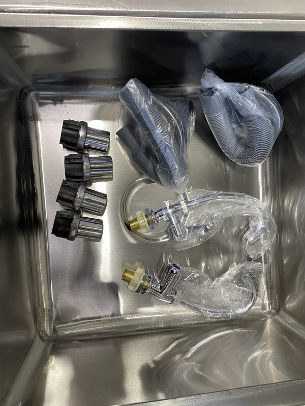 This sink is modular to 610mm deep splashback benches, flat benches and cabinets.