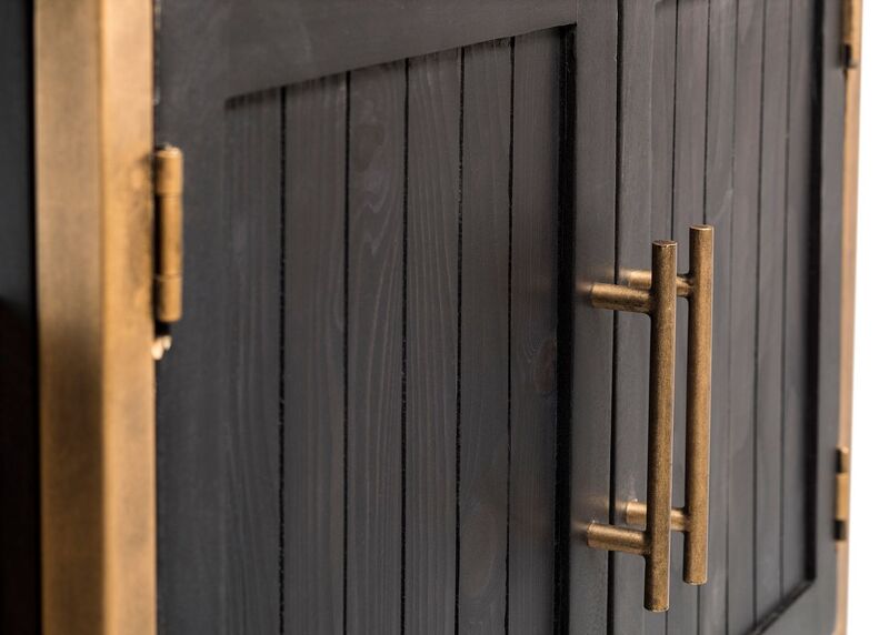 - Colour: Frame: French Brass | Shelves & Cabinet Doors: Black