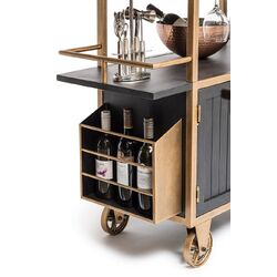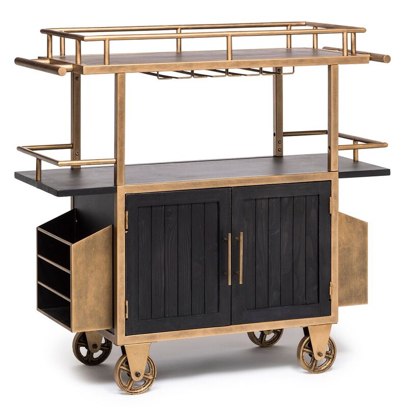 French Brass and Black Drinks Trolley Bar Cart with Bottle Rack Storage