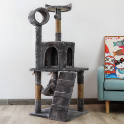 This sturdy cat tree is 135cm tall and features a cubby house, tunnel, ramp and multiple storeys for your pets to explore. It's covered in soft plush fabric that's comfy and stylish, perfect for lounging and napping. The dangling toy at the very top encourages curious kitties to climb, while the built-in scratching post provides a healthy outlet for their scratching instincts. Finally, the hammock offers a cozy place to curl up and rest.