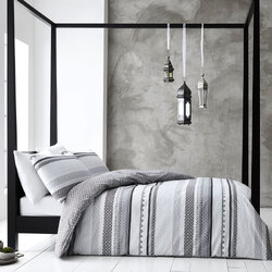 The Gabrielle Grey Cotton Rich Quilt Cover Set will work well with most bedroom interior with its naturally calming colour scheme. The design features an intricate tribal pattern printed in soft neutral hues of grey, white, silver, black, and charcoal for a cosy and dramatic bedroom style. It is made from breathable and strong polyester cotton fabric with easy care properties and softness you can enjoy for relaxing night's sleep.
