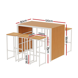 With its chic yet simple design, the Gardeon 7-piece Outdoor Bar Set is the perfect addition to your backyard, patio or place of business. The set includes 6 chairs and a matching table, perfect for entertaining the whole family. With premium engineered wood slats mounted on a corrosion-resistant powder-coated steel frame, the set is designed to withstand all kinds of weather and keep your guests comfortable and entertained. The classic neutral colour scheme will fit most home and backyard decor. Each chair features a built-in footrest for maximum comfort. The slatted design ensures proper drainage during wet weather. The integrated design makes it easy to store-simply slide the chairs underneath when finished for seamless storage. Easy to assemble, you can use the set outdoors or indoors for a fashionable bar set up anywhere in the home. Enjoy the great outdoors again with a Gardeon 7-piece Outdoor Bar Set.