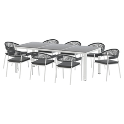 Experience the best the outdoors has to offer with this Gardeon 9-piece Outdoor Setting. Featuring eight single chairs and a matching dining table, this set is perfect for sitting outside and watching the world go by in comfort and style. The set is made using powder-coated steel and meticulously hand-woven rope for rust and water resistance, while the removable outdoor cushions feature water-resistant fabric and thick 5cm high-density foam for comfort. The chairs have a slanted backrest and handrails to keep guests comfortable for hours on end. It is easy to assemble and features non-slip feet to keep everything in its place. The dining table features a stylish tempered glass tabletop that is gorgeous to look at, easy to maintain and generous enough to hold all of your favourite drinks, reading materials or outdoor games. Maintenance is as easy as wiping down the furniture with a damp cloth. So what are you waiting for? Make the most out of the beautiful weather with a Gardeon 9-piece Outdoor Dining Setting.