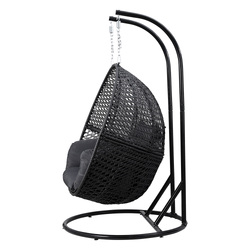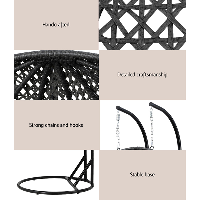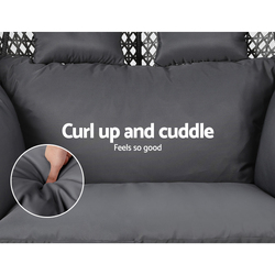Gardeon Outdoor Egg Swing Chair Hanging Pod Chair Wicker Cushion 2 Person Grey