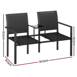 With its modern rustic vibes, the Gardeon Loveseat is the perfect outdoor tete-a-tete set to spend the day with your friends. Made from steel and textilene with an impeccable weather-resistant finish, the bench has a strong structure with a smooth, easy-to-clean surface. The textilene seat is highly breathable, providing ventilation and keeping you comfortable throughout any weather. With two integrated armchairs and an adjoining tempered glass tabletop, the bench has plenty of sitting and extra storage space. The high-backed design ensures your comfort is always forefront and the trending style will stand the test of time. Enjoy the outdoors this season with a Gardeon Loveseat.