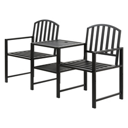 With its modern rustic vibes, the Gardeon 2-Seater Garden Bench is the perfect outdoor tete-a-tete set to spend the day with your friends. Made from black steel with an impeccable weather-resistant finish, the bench has a strong structure with a smooth, easy-to-clean surface and curved edges. With two integrated armchairs, an adjoining table and a double-deck design, the bench has plenty of sitting and extra storage space. A built-in parasol hole will fit an outdoor umbrella and keep your guests dry and in the shade. The classic design ensures your comfort is always forefront and the trending style will stand the test of time. Enjoy the outdoors this season with a Gardeon 2-Seater Garden Bench.